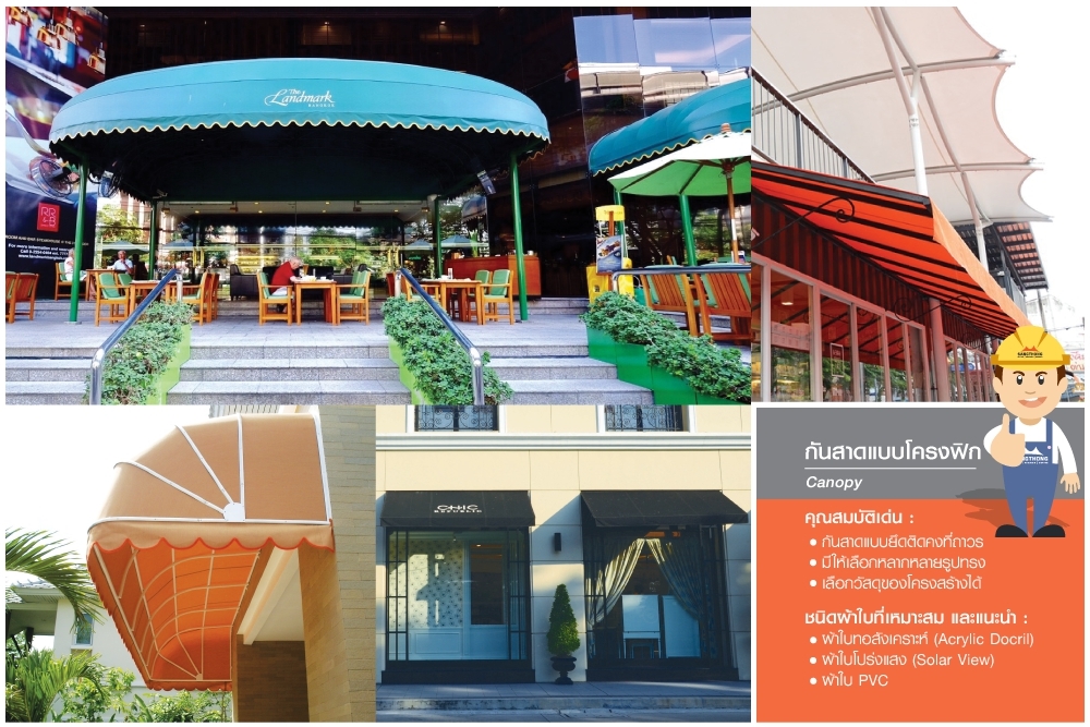 ข้อดี : กันแดด กันฝน ช่วยเพิ่มความภูมิฐานให้กับสถานที่