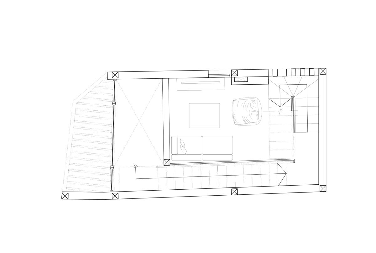 ตัวตึกแถวโฉมใหม่นี้ มีการออกแบบมาสำหรับผู้พักอาศัยจำนวน 4 คน หรือประมาณหนึ่งครอบครัวขนาดเล็ก มีการแบ่งชั้นพักอาศัยเป็นชั้นต่างๆ จำนวน 4 ชั้น รวมถึงชั้นลอยอีกหนึ่งชั้นที่ต่อเติมเข้ามาเป็นมุมสงบสำหรับพักผ่อนยามว่าง บริเวณด้านหน้าอาคารพักอาศัยในแต่ละชั้น จะมีการแบ่งพื้นที่เป็นลานและระเบียงเล็กๆ เพื่อเป็นเขตเชื่อมต่อระหว่างนอกบ้านและภายในบ้าน สร้างความเป็นส่วนตัวให้กับผู้พักอาศัยใด้หลุดพ้นจากสิ่งแวดล้อมอันเสื่อมโทรมภายนอก อีกทั้งยังเป็นการปรับแบบแปลนของบ้านให้เข้ากับสภาพพื้นที่อันไม่สมดุลอีกด้วย