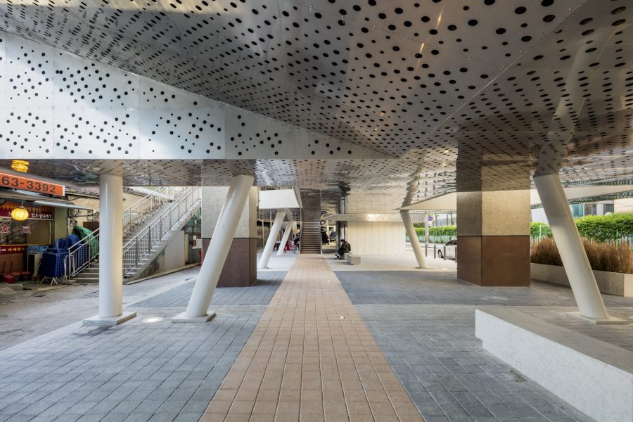 Imun – Overpass Road เป็นพื้นที่โครงสร้างถนนขนาดใหญ่ มีสะพานลอยรถไฟและสะพานลอยข้ามถนนทับซ้อนกัน ถนนโดยรอบถูกตัดขาดด้วยสะพานลอย ทางทีมออกแบบจึงใช้ ‘The Roof’ หรือ หลังคา เป็นแรงบันดาลใจในการออกแบบ