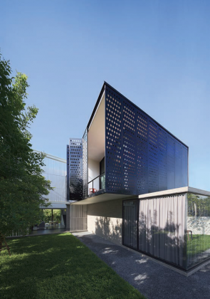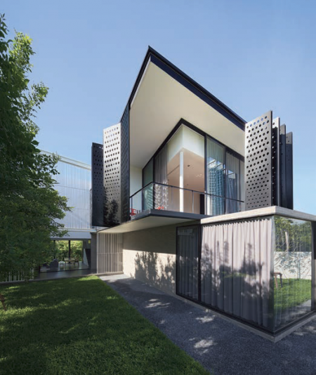 จากความคุ้นชินในอดีต เมื่อกล่าวถึงเรื่องป้องกันการโจรกรรม ‘เหล็กดัด’ ถือเป็นวิธีที่ได้รับความนิยมและถูกนำมาใช้กันอย่างแพร่หลาย เพราะสามารถป้องกันการโจรกรรมหรือชะลอการเกิดเหตุได้ตั้งแต่ต้นเหตุ แต่ขณะเดียวกันก็ให้ความรู้สึกเหมือนเป็นการกักขังผู้ที่อาศัยอยู่ในบ้านไปด้วย ดังนั้นในการออกแบบคุณอยุทธ์จึงเสนอแนวคิดในการสร้างภาพลักษณ์ของเหล็กดัดในมุมที่ต่างออกไปได้อย่างน่าสนใจ ผนวกกับการประยุกต์องค์ความรู้เรื่องพื้นที่ใช้สอยของบ้านเรือนไทยสมัยก่อนและเรื่องของทิศทางของแดด ลม ฝน (Orientation) รวมทั้งเมื่อผสานกับความเชี่ยวชาญในการนำวัสดุอะลูมิเนียมมาใช้ในการออกแบบเพื่อตอบโจทย์ตามความต้องการของเจ้าของบ้านด้วยแล้ว บ้านหลังนี้จึงมีคุณค่าทางสถาปัตยกรรมและทางจิตใจเป็นอย่างยิ่ง