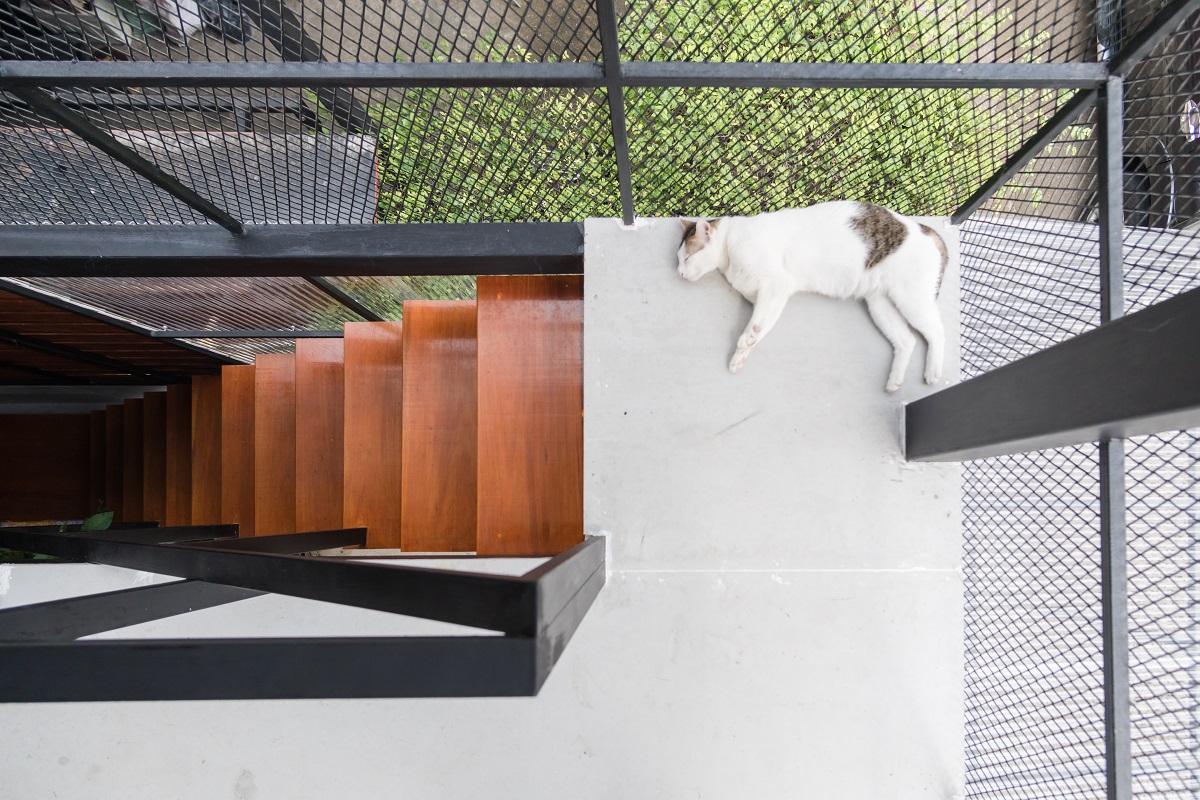 เราตีโจทย์ความต้องการของเจ้าของบ้านตามพฤติกรรมของเขา ก็ได้รู้ว่า ชีวิตประจำวันส่วนใหญ่ของเจ้าของบ้านอยู่ในย่านสำเพ็ง เลยใช้เหล็กดัดของบ้านในยุคเก่าที่เราจะพบได้เวลาไปย่านนั้น หยิบเอาองค์ประกอบเหล่านั้นมาใช้ตกแต่งภายนอกและภายใน เราเน้นความเรียบง่าย และการใช้ชีวิตแบบสบาย ๆ ของเจ้าของบ้านและแมวตัวโปรด (หลายตัว)