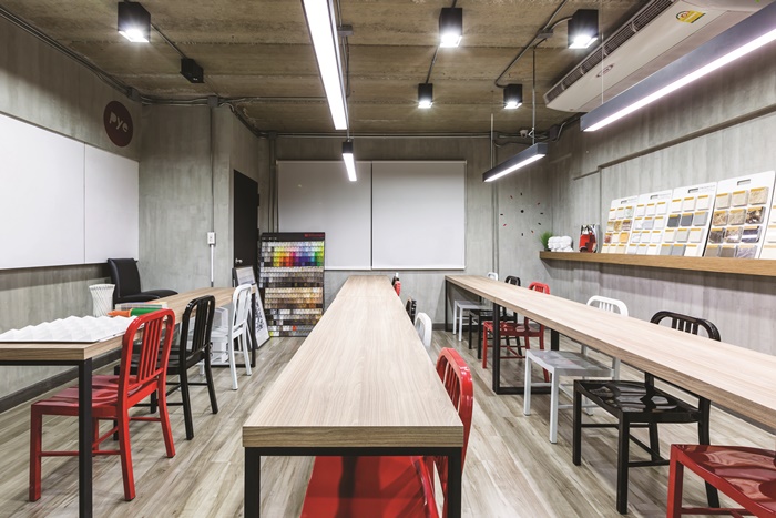 นอกจากจะให้ความเพลิดเพลินกับการได้พบวัสดุใหม่ ๆ สำหรับการตกแต่งภายในแล้ว ที่นี่ยังมีอีกหนึ่งธุรกิจที่เกี่ยวเนื่องกับการเรียนการสอนทางด้านดีไซน์ อย่าง Pye Design School หรือโรงเรียนออกแบบพาย สถานที่สำหรับเรียนรู้ทางด้านการออกแบบตกแต่งภายใน ซึ่งถือเป็นการต่อยอดธุรกิจด้านการออกแบบสถาปัตยกรรมและตกแต่งภายในของ Pye Design