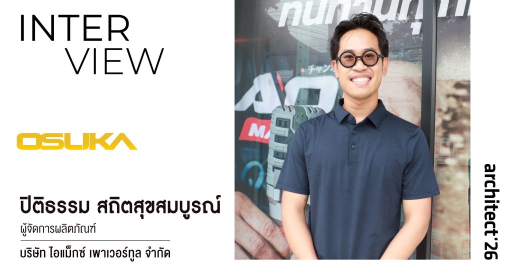 ภายในงานสถาปนิก’69 ที่กำลังจะมาถึง Osuka เตรียมกลับมาพร้อมนวัตกรรมรุ่นใหม่ ล่าสุด รวมถึงไฮไลต์ผลิตภัณฑ์ที่ถูกพัฒนาขึ้นจากข้อมูลจริงของผู้ใช้งาน นำทีมโดยคุณแทน-ปิติธรรม สถิตสุขสมบูรณ์ ผู้จัดการผลิตภัณฑ์ ผู้ทำหน้าที่เก็บข้อมูล ฟีดแบ็ค และความต้องการจากผู้ใช้งาน เพื่อนำมาสู่การสร้างสรรค์เครื่องมือช่างที่เข้าใจคนไทยอย่างแท้จริง